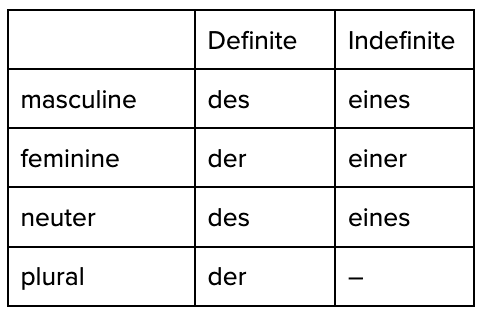 it indicates the objects of some prepositions, often the same ones in English that contain the word ‘of’, like ‘instead of’ (statt / anstatt), ‘because of’ (wegen), ‘in spite of’ (trotz), and so on.