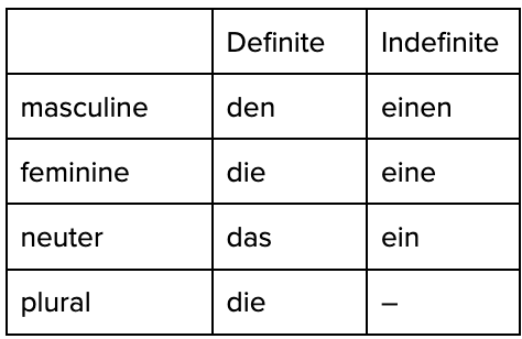 And it’s also used for a lot of places we go to, or destinations of things we’re moving around, and we can recognise the accusative case because we use the following articles and pronouns.