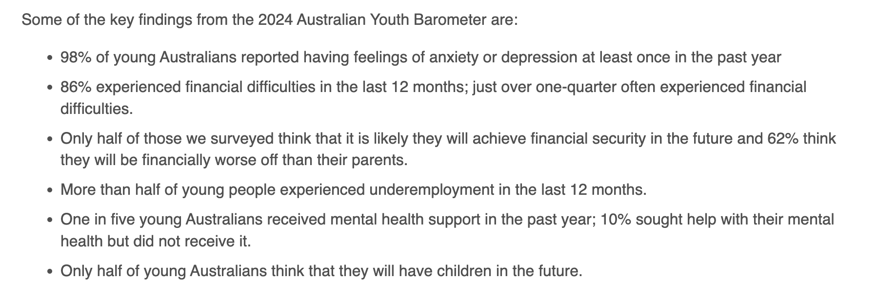 The 2022 Australian Youth Barometer showed worrying trends with financial security a common concern.