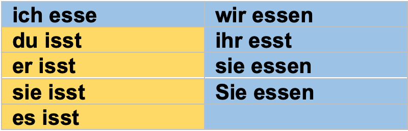 essen → isst nehmen → nimmt geben → gibt helfen → hilft
